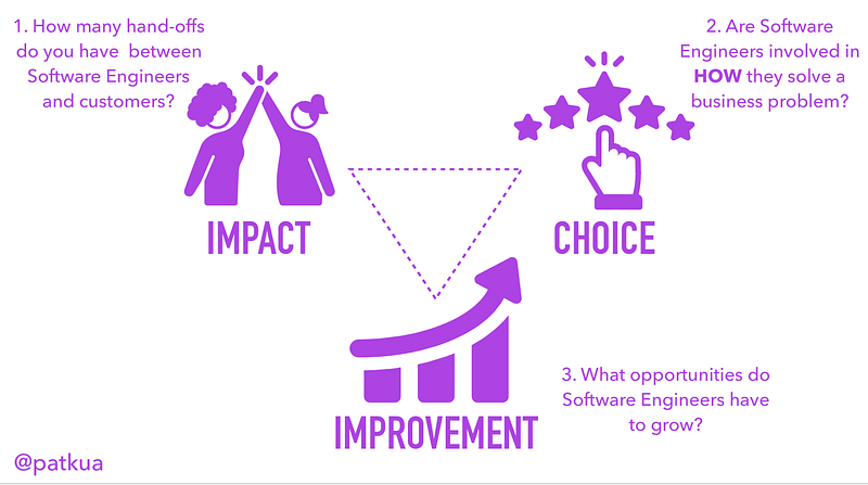 In ‘Secrets of a strong engineering culture’, Pat Kua elaborates on how to create an engineering culture that will attract engineers and help them grow. The three secrets are: make sure your engineers can see the impact of their work, they have a choice in coming up with a solution and your company can help them grow. Want to have an idea on how your current engineering culture performs? Ask yourself the following questions:
